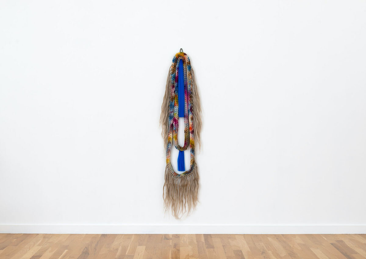 Extraño 2 , 2020 Ice-dyed cotton rope, synthetic hair 24h x 13w x 3.50d in